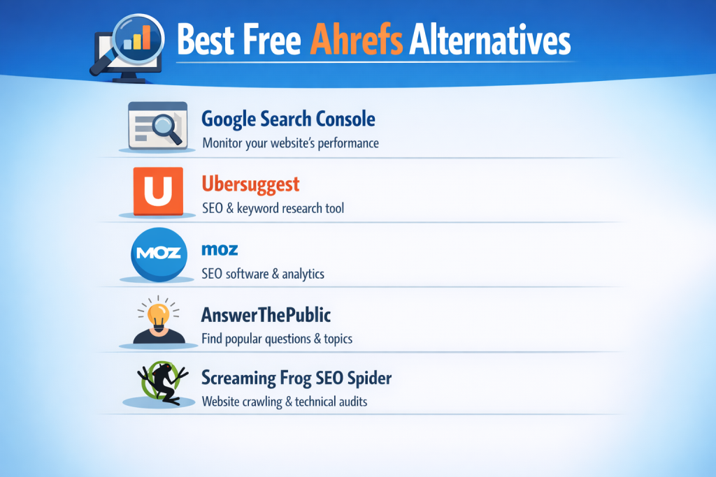There is no single free platform that completely replaces Ahrefs, but there are many useful options that can help you achieve strong SEO results without paying for a premium subscription right away.
